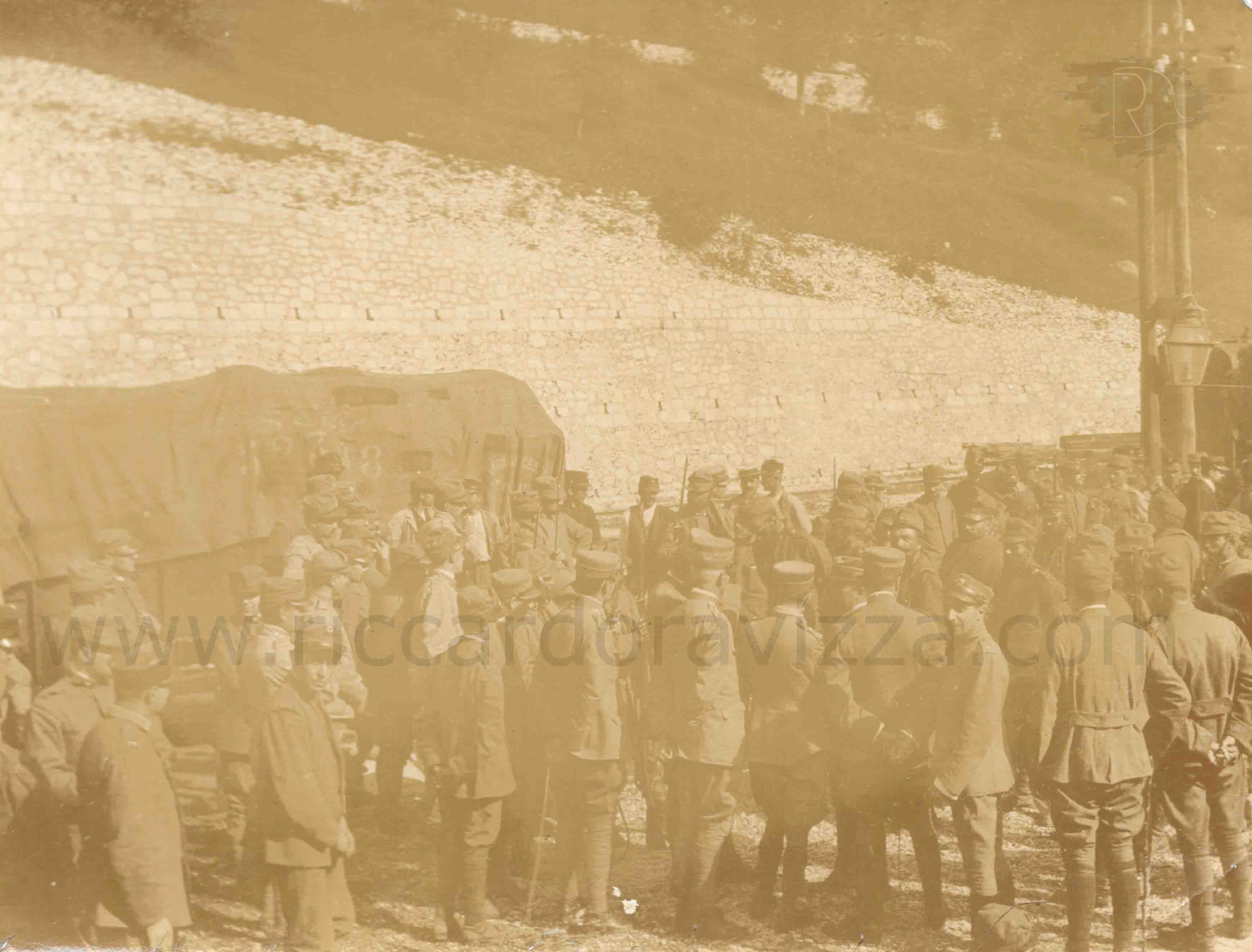 Prigionieri austriaci accompagnati verso il campo di prigionia.Medio Isonzo 1916