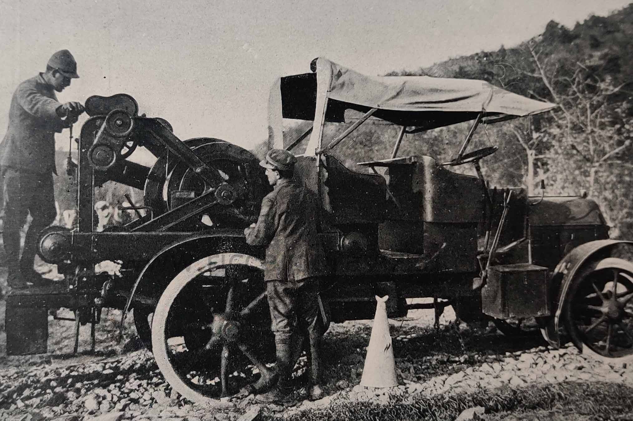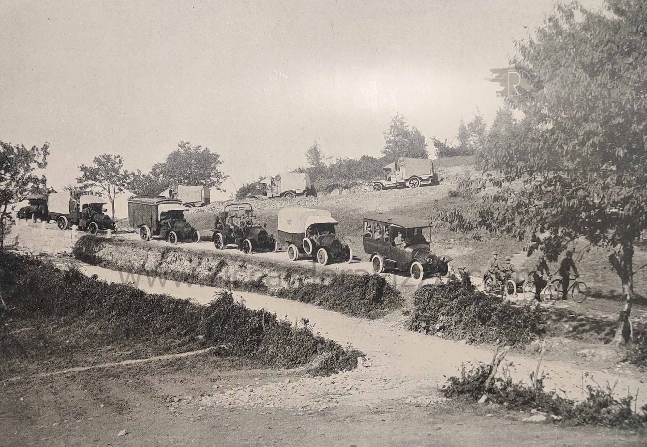 Una sezione aerostatica su autocarri in marcia - a kite balloon section on motor cars