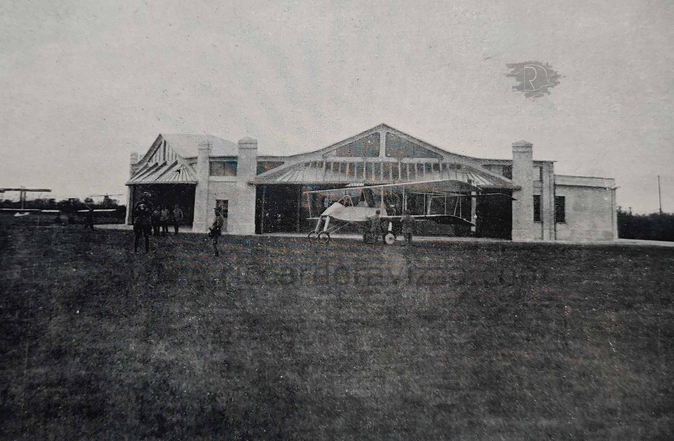 Un apparecchio Voisin esce dall'hangar - A Voisin aeroplane leaving the shed