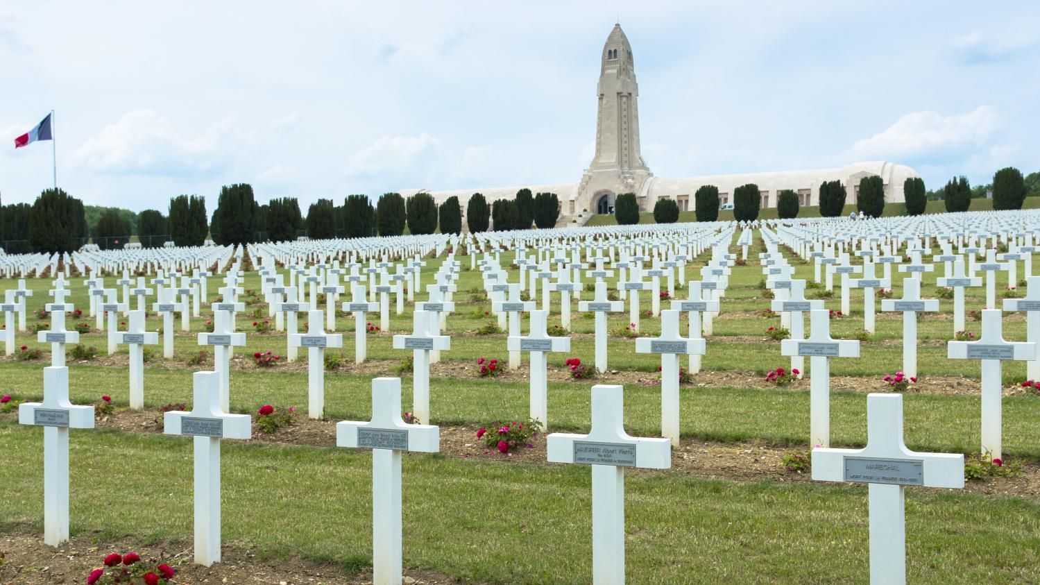 Un cartone chiuso davanti alla porta esterna della cappella dell'ossario di Douaumont (Verdun).