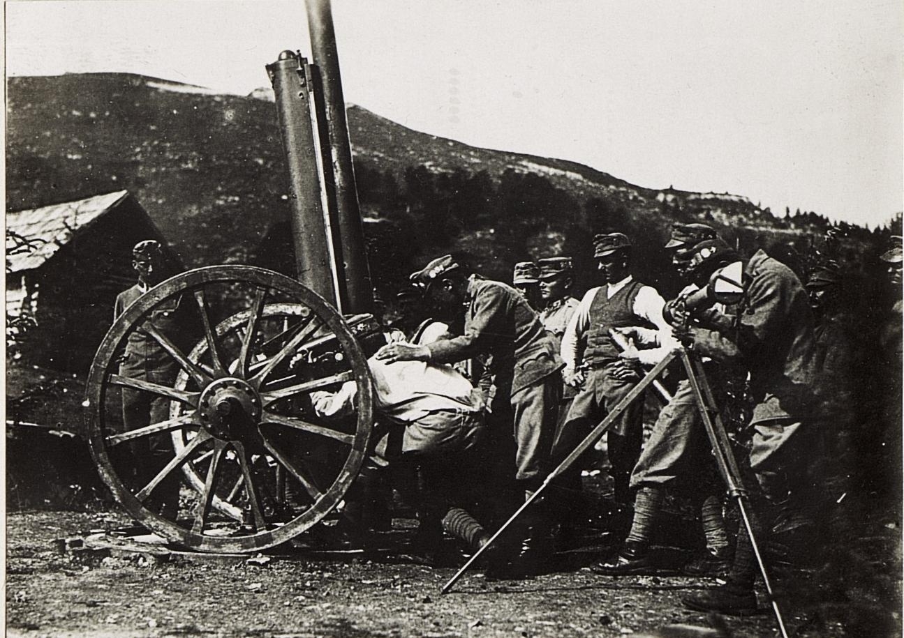 Si tratterebbe di un cannone antiaereo austroungarico della prima guerra mondiale montato però su un affusto da artiglieria da campagna.