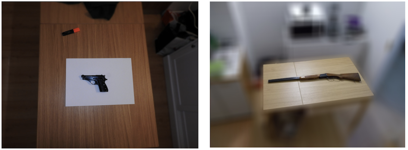 In queste due foto di esempio sono concentrati diversi errori di composizione: in entrambe il soggetto principale (l'arma) anche se ben centrato all'interno dell'inquadratura è troppo distante e risulta molto piccolo per poterlo esaminare agevolmente.