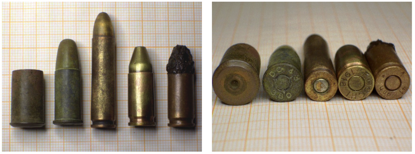 Lo stesso vale per l'eventuale munizionamento, di cui è essenziale riportare misure il più possibile precise - date le dimensioni sarebbe ideale utilizzare un calibro, in mancanza del quale è auspicabile almeno un righello o della carta millimetrata o quadrettata (nota: un solo millimetro può rappresentare una differenza enorme!) ma soprattutto, una foto chiara e nitida del fondello del bossolo, che consente di ottenere immediatamente una serie di informazioni utili.*