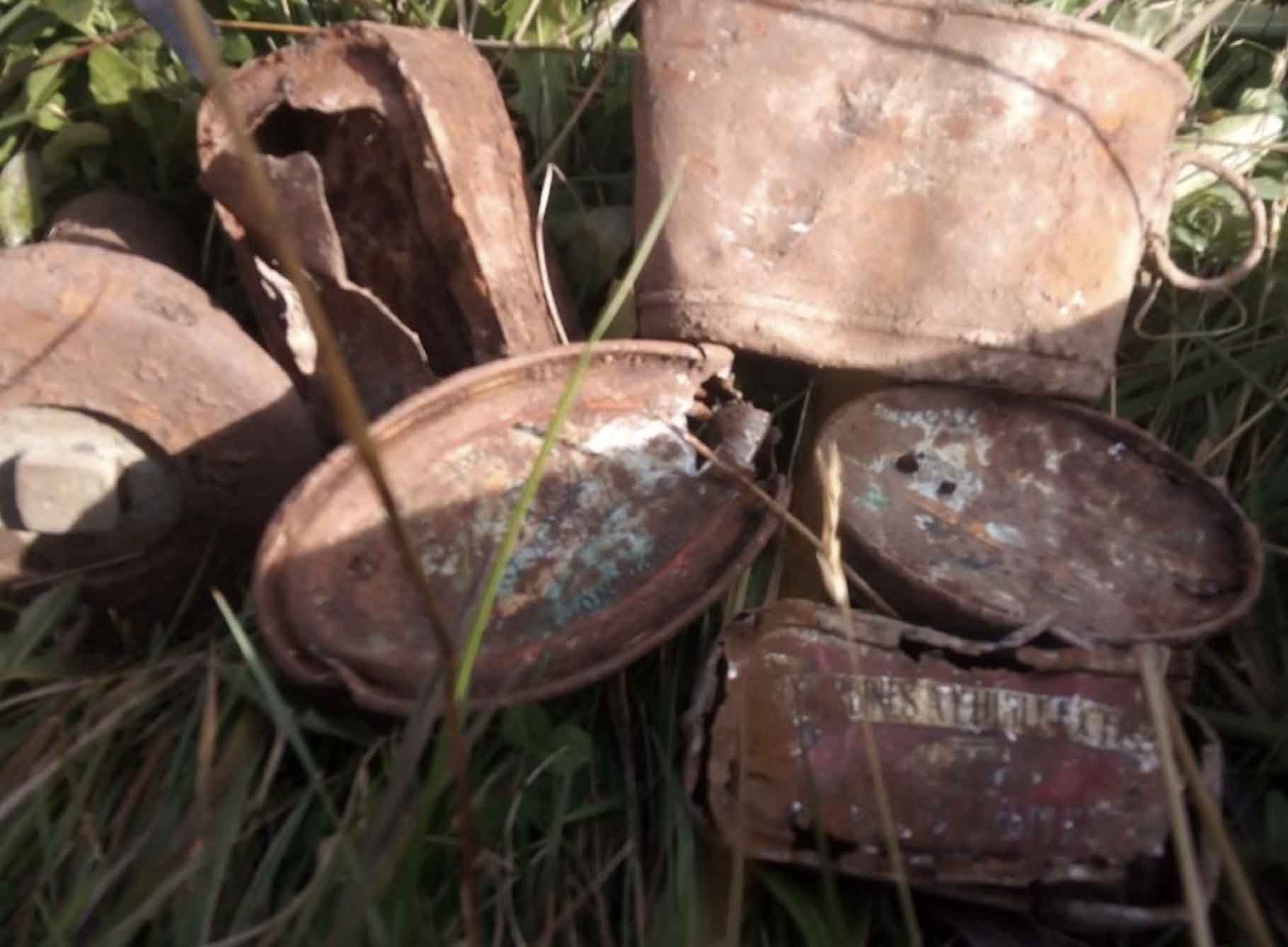Un gavettino, quattro scatolette alimentari e un fondello di un 105 mm perforante.
