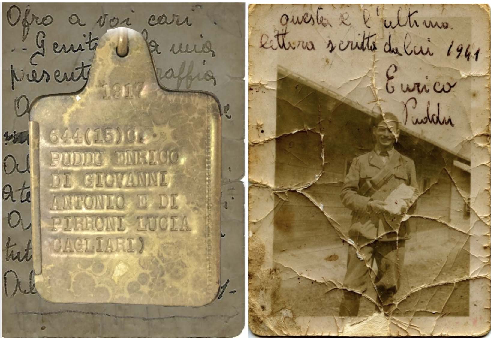 Enrico era cugino dei miei genitori. Sin da piccolo, frequentando la casa di zia Lucia, mamma di Enrico, ho spesso ascoltato il suo doloroso racconto. Piangeva questo figlio morto in un paese lontano durante la Seconda Guerra Mondiale. Ricordo benissimo la foto esposta sopra un mobile. Per lui non c’è stata una tomba sulla quale i parenti potessero posare un fiore. Solo in seguito alla morte della mamma, avvenuta nel 1966, nella lapide, accanto alla foto della madre è stata aggiunta la fotografia e il nome di Enrico, morto 25 anni prima di lei. Quando nel mese di maggio 2020 mi sono recato all’Archivio di Stato di Cagliari, nel leggere l’elenco delle cartelle pronte per essere da me consultate, sono stato sopraffatto dall’emozione. La prima cartella che ho visionato è stata quella dello zio Enrico e aprendola in me è emerso vivo il ricordo della disperazione della madre e delle lacrime che versava ogni volta che parlava della triste sorte dell’amatissimo figlio. Man mano che esaminavo i documenti di Enrico, seppure in ritardo, aggiungevo particolari e si dissipavano tanti dubbi e perplessità espresse per lungo tempo dai parenti e ho trovato una risposta a tanti quesiti. Tra le carte, ho trovato una targhetta in metallo (piastrina) con i dati identificativi di Enrico e che lui aveva tenuto sul petto per oltre due anni. Toccare con mano quell’oggetto che gli era appartenuto e che era stato testimone del sacrificio e dell’eroismo dello zio, l’ho considerato quasi un premio per il lavoro che stavo svolgendo e mi ha dato un ulteriore stimolo per portare avanti la ricerca. Avrei voluto portare quella piastrina con me e consegnarla ai parenti, ma ciò non era possibile perché quella targhetta è un cimelio di guerra e come tale deve essere custodita.