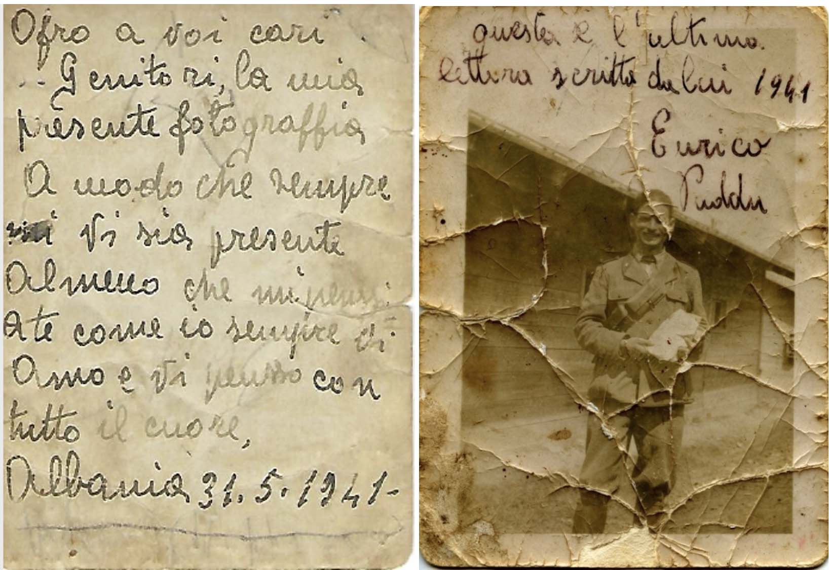 La sua ultima lettera spedita dall’Albania con allegata una foto risale al mese di maggio del 1941, esattamente un mese prima della sua morte. È stata la sua ultima foto, quella che la mamma ha tenuto in mano, ha accarezzato e baciato per tanti anni; una foto invecchiata dalle lacrime di una mamma che ha perso il suo amato figlio all’età di ventiquattro anni.