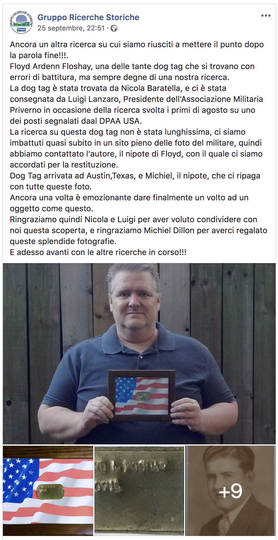 Da qualche anno ha infatti avviato una collaborazione ufficiale con VDK Germanico di Pomezia, che prevede la restituzione di piastrini di riconoscimento germanici rinvenuti e la ricerca di dispersi in guerra, mentre dal 2017 ha intrapreso un progetto analogo con un Dipartimento alla Difesa USA, sempre finalizzato alla ricerca di dispersi in guerra.