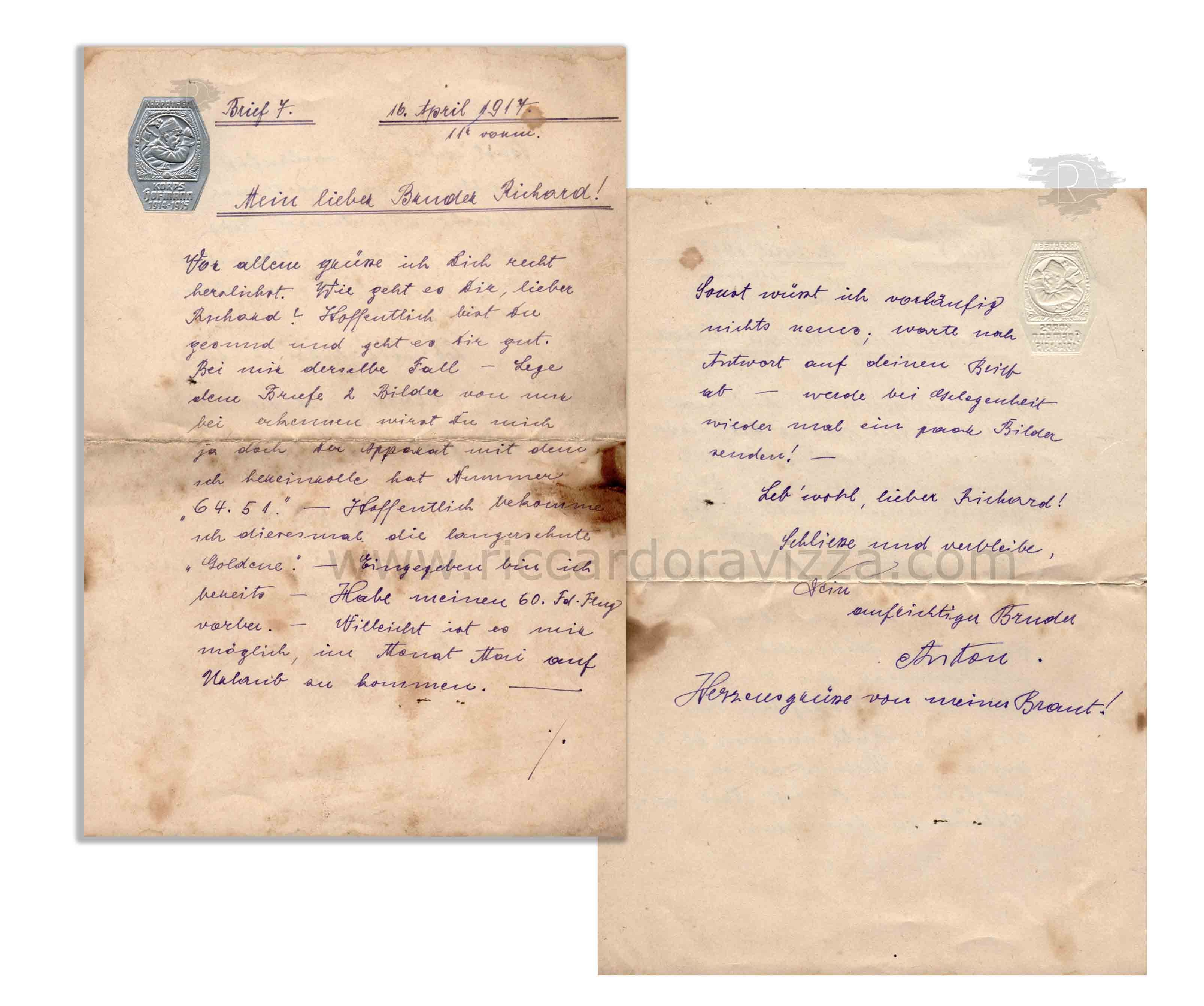 La frase italiana che spicca in questa cartolina souvenir di preda bellica, scritta nel giugno del 1916 da un soldato dell'Impero asburgico ma spedita da un soldato italiano verso Bologna.