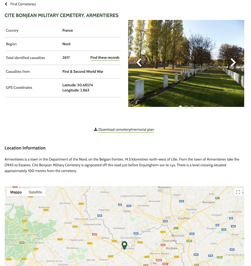 La ricerca dei caduti: https://www.cwgc.org/find/find-war-dead