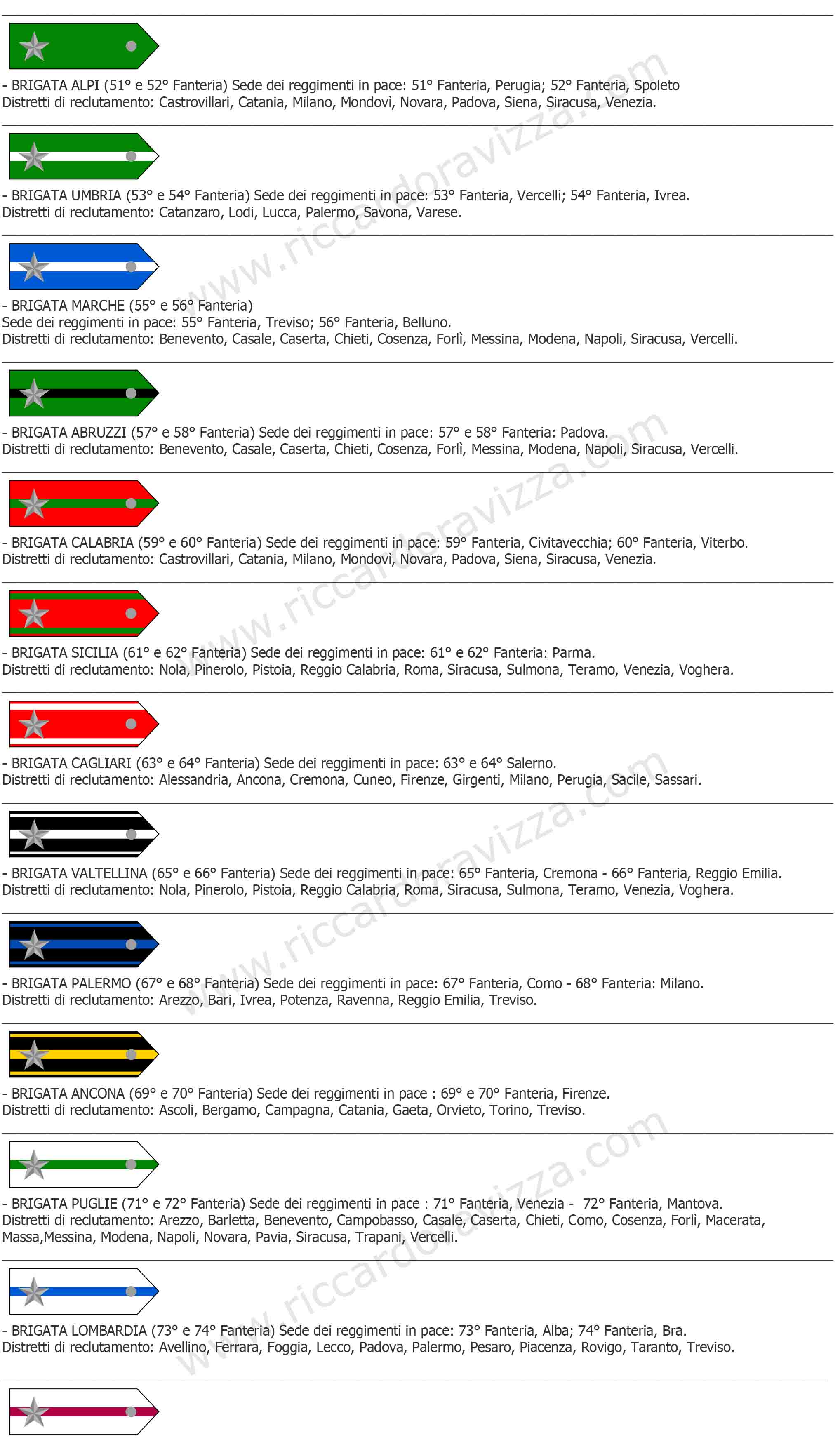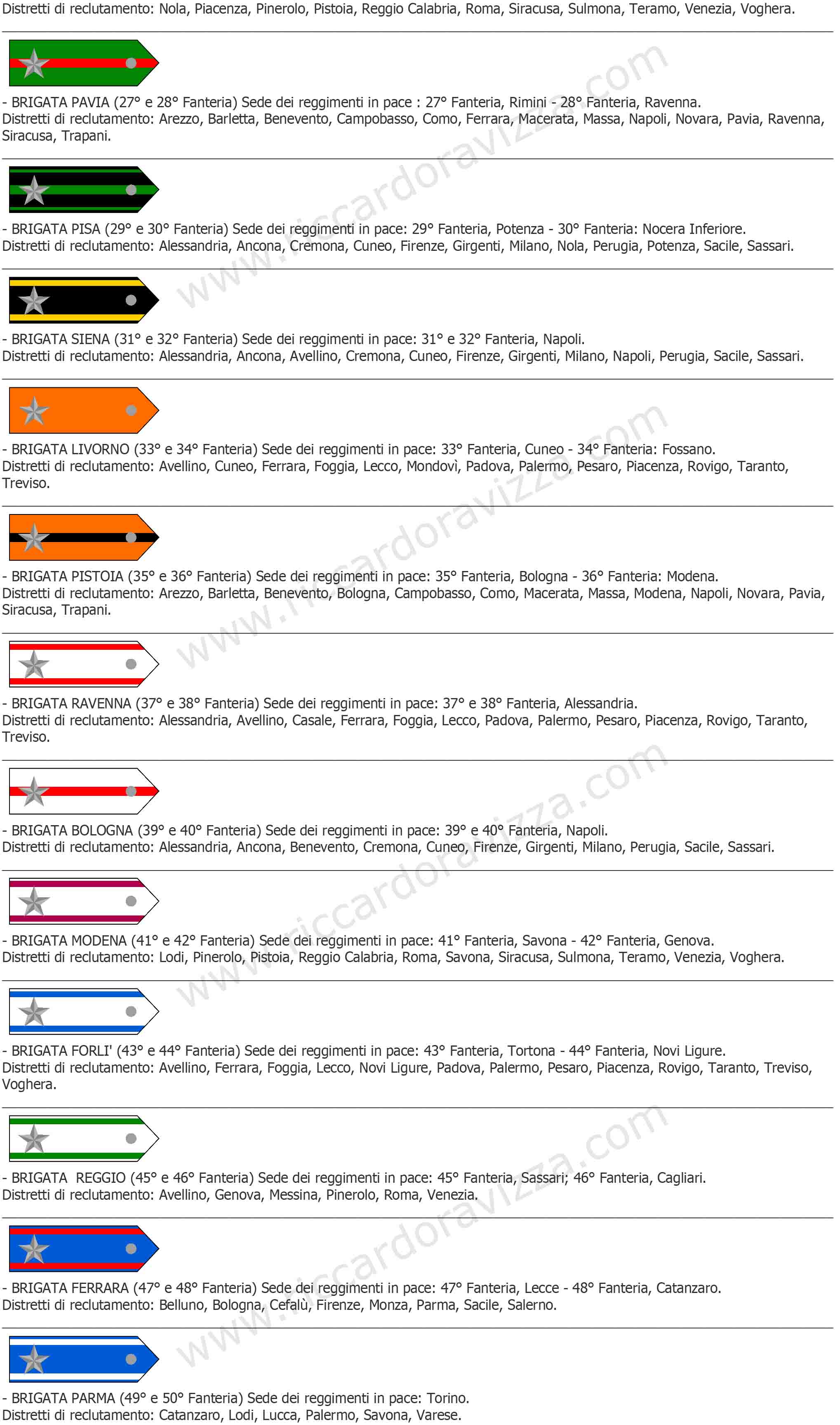 Distintivi delle Brigate di Fanteria e distretti di reclutamento