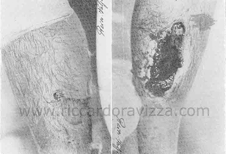 A sinistra il foro d'entrata a destra quello di uscita (scattata dal Dott. Reiss)