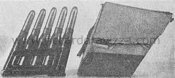 Caricatore con cartucce esplosive e la custodia in cartone in una foto d'epoca