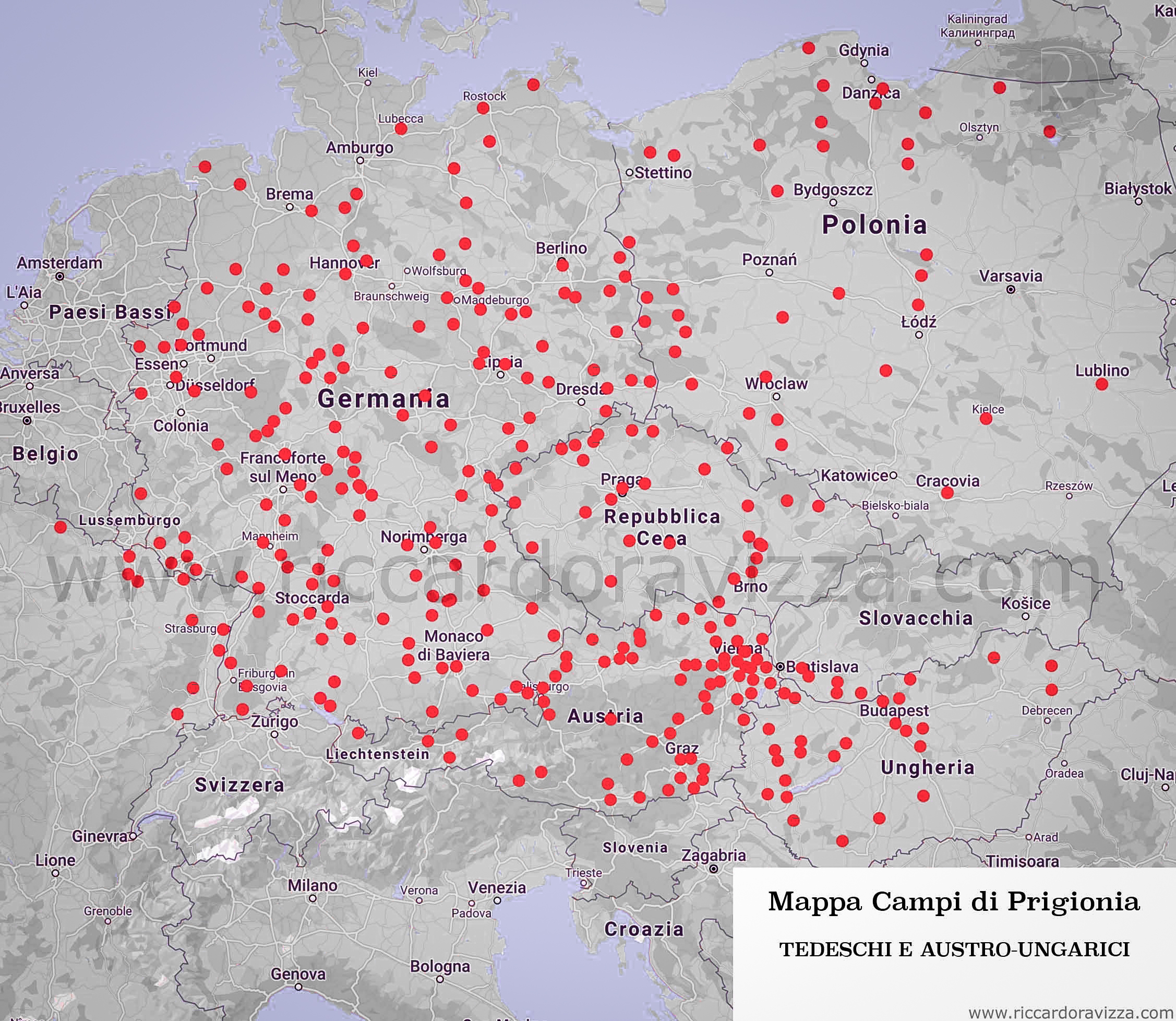Mappa ed elenco dei campi di prigionia della Prima guerra mondiale
