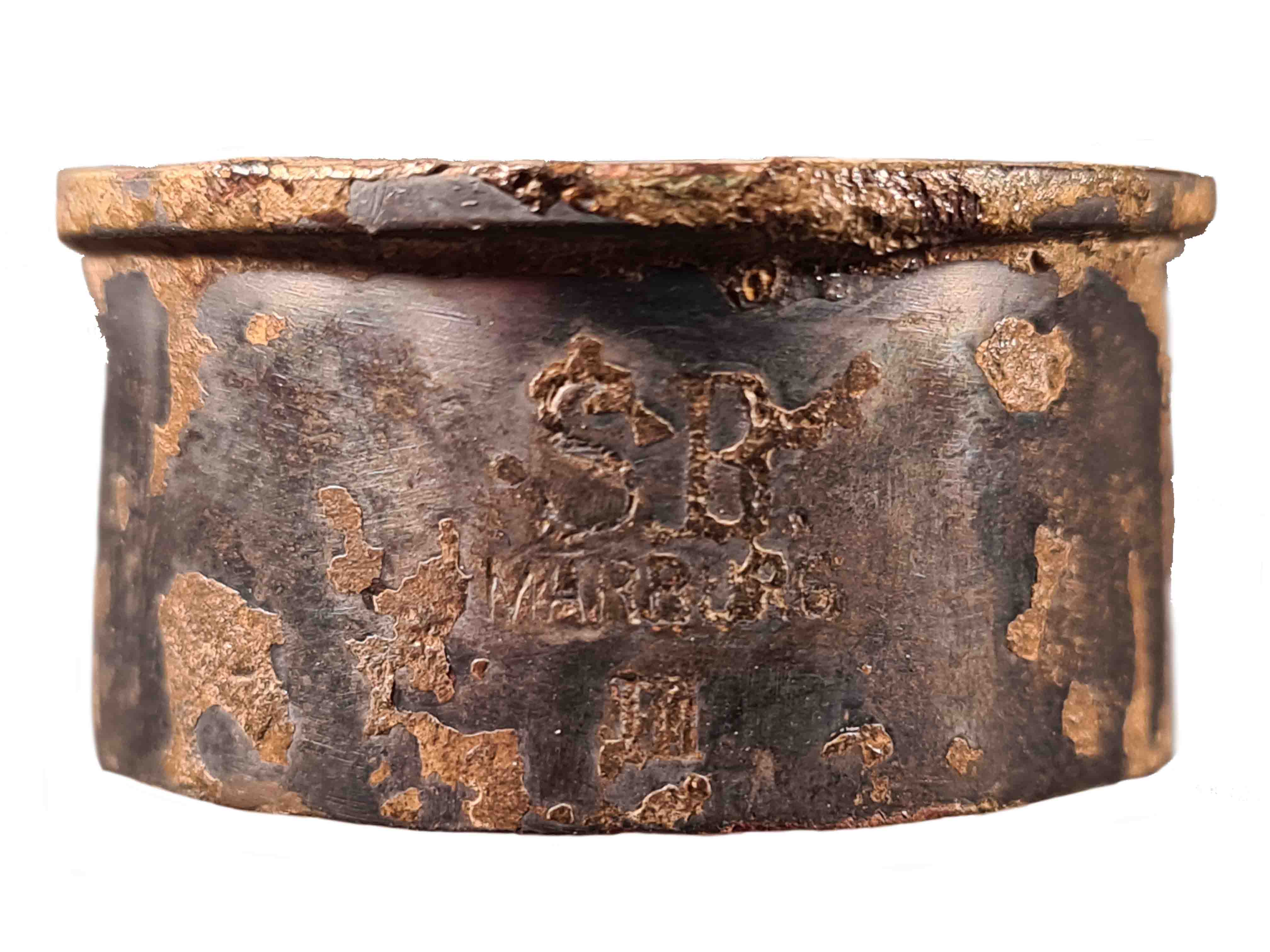 Un porta sale prelevato nella stazione di Marburg (Maribor – Slo) nel lontano 1917 per venir portato in linea da un anonimo soldato della duplice monarchia in transito attraverso quella stazione. Rinvenuto nel 1995 all’interno di una caverna nelle seconde linee asburgiche legate alla decima e undicesima battaglia ha rivelato la sua provenienza, incisa nella parte metallica. Vi è infatti leggibile il marchio SB – Marburg (Staats Bahn Marburg) e sotto un III, indicazione della classe del ristorante dal quale il salino è stato prelevato.