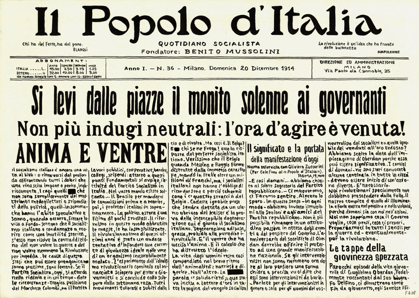 In questo caso attraverso l'inchiostro. La stampa del tempo risente infatti del vento politico di casa, sia sulla politica interna che per quella estera, con i ministri Salandra e Sonnino che soffiano forte in direzione dell'intervento in guerra. Senza dimenticare gli intellettuali, D'Annunzio in testa, a favore di un ingresso senza alternative. Questo, a fronte di un'opinione pubblica schierata in maggioranza a protezione del neutralismo.