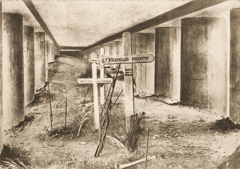 Nel bel mezzo della Battaglia di Verdun, ecco spuntare dal terreno decine di baionette. L'episodio interessato, tragico quanto singolare, ha luogo tra l'11 e il 12 giugno, e porta ad erigere la rinomata Trincea delle Baionette come luogo commemorativo di grande fascino e rievocazione storica. L'11 giugno, nell'arco di dieci ore infernali, le posizioni francesi in trincea vengono bombardate senza tregua dall'artiglieria tedesca. Ad attacco esaurito, quello che si presenta è uno spettacolo dell'orrore. Alcuni caduti sono stati colti alla sprovvista, in piedi. Altri invece in ginocchio, nell'atto di proteggersi dalle schegge. Il risultato visivo racconta di decine di punte di baionette che escono dal terreno, sommerse dalla terra crollata. Il giorno dopo sessanta soldati francesi superstiti, ma a corto di cibo, chiedono la resa agli indomiti tedeschi (che nel frattempo hanno lanciato ulteriori assalti), allineando i fucili verticalmente, in segno di omaggio.