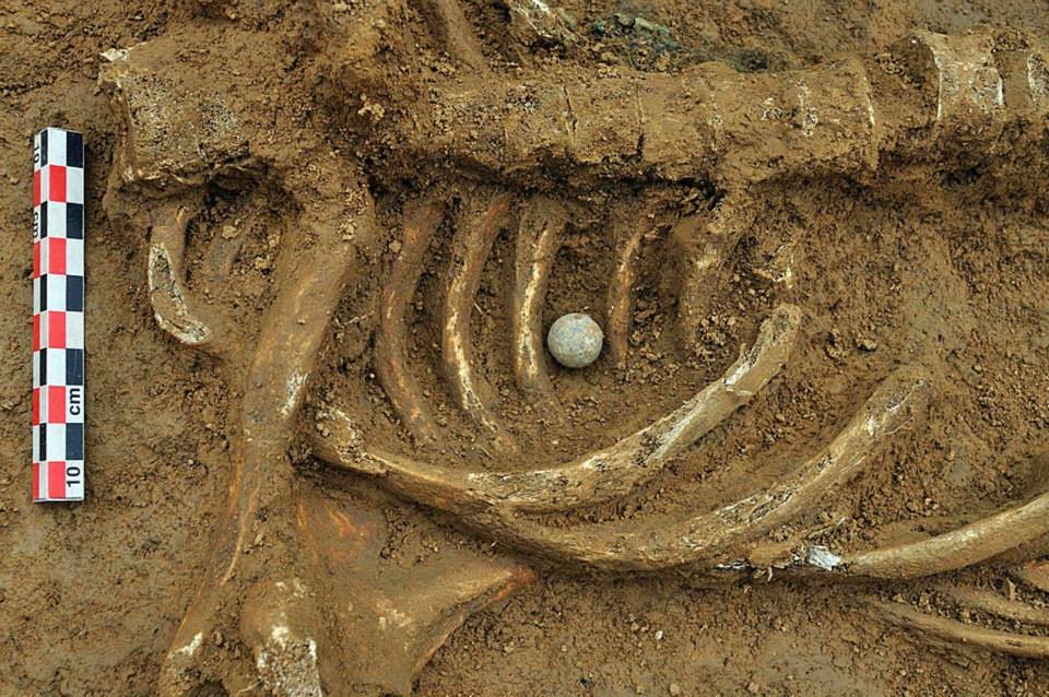 Potrebbe quindi essere stato seppellito frettolosamente dai compagni dopo il trapasso. Lo scheletro mostra il cranio spezzato e manca delle mani e di un piede. Un molare lacerato fa invece intuire come, con tutta probabilità, venisse usato per aprire fiaschette di polvere da sparo. Mentre dall'uniforme, completamente marcita, sono stati recuperati una palla di moschetto, una ventina di monete e una pietra focaia. Il ritrovamento delle spoglie del soldato, che aveva all'incirca 20 anni al momento della morte, è un evento eccezionale se considerato il fatto che sia stato rinvenuto intatto. Oltre a ciò, va precisato anche che l'identificazione dei caduti dell'epoca in questione è un affare ancora più complicato, se si pensa al solo fatto che non c'era l'intenzione di lasciare indicazioni di alcuna sorta per il riconoscimento delle salme.