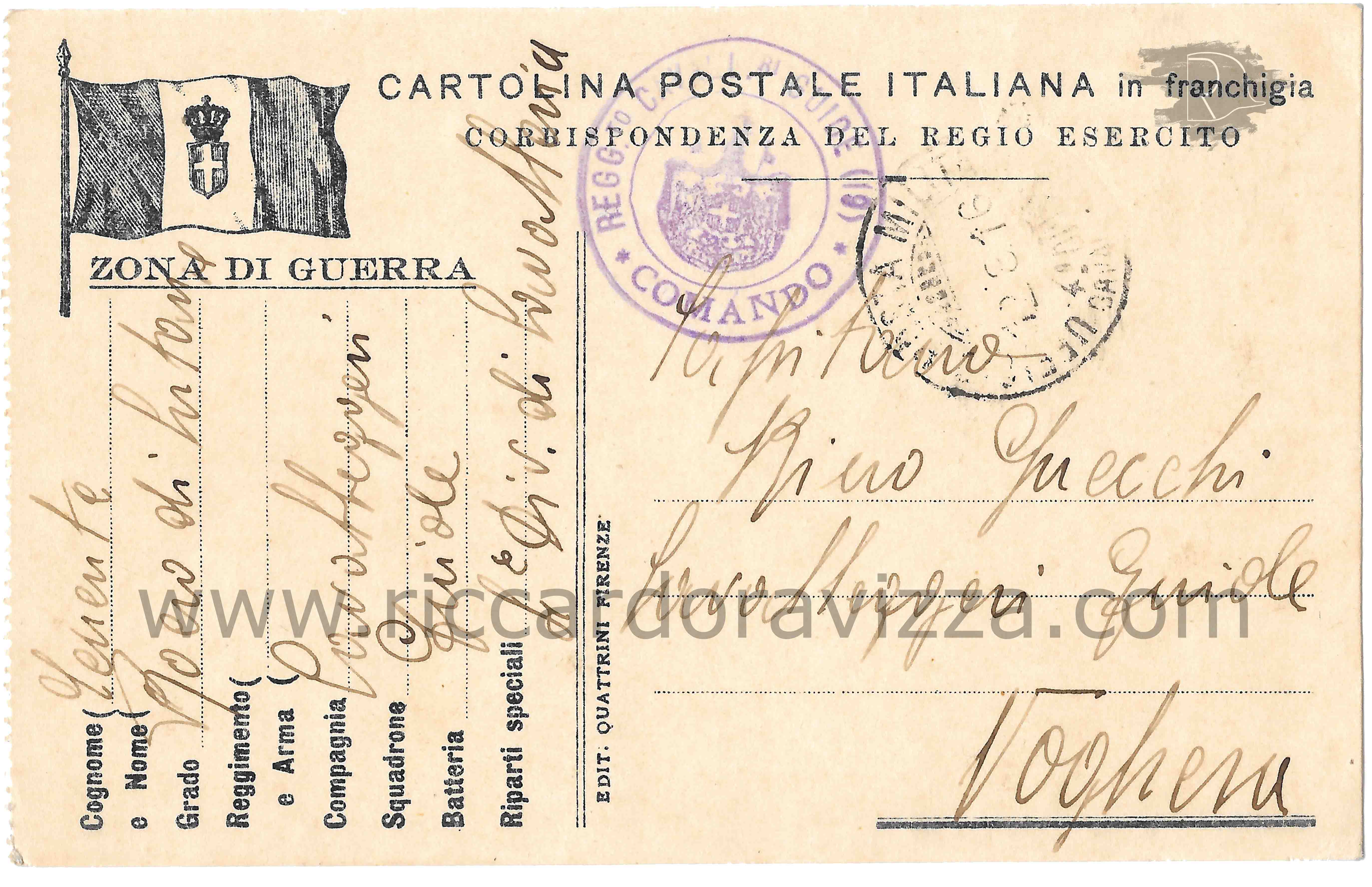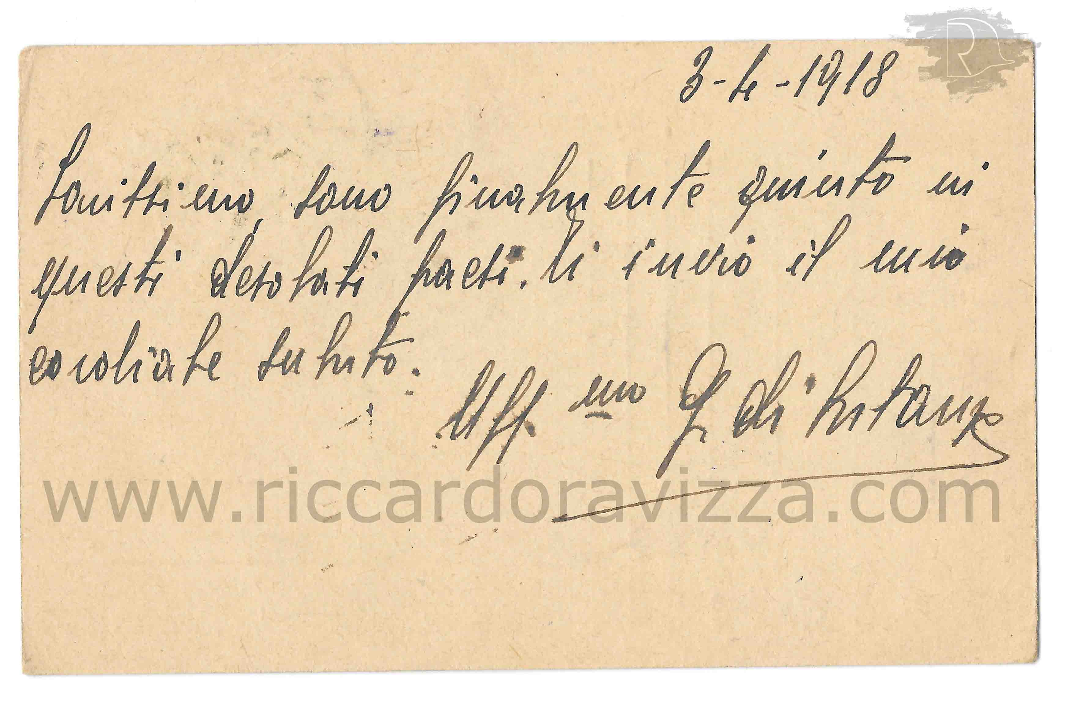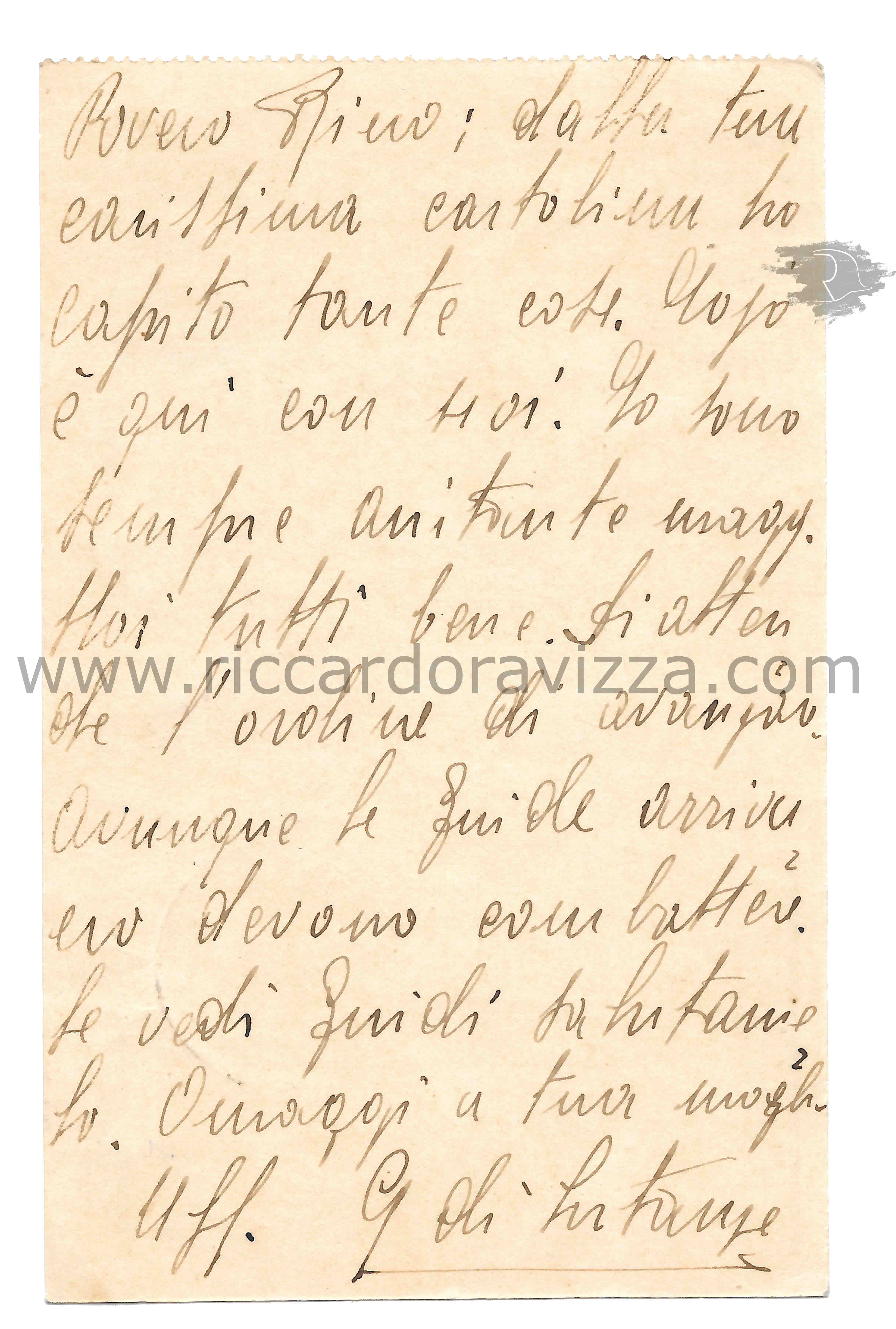 Povero Rino: dalla tua carissima cartolina ho capito tante cose. .... è qui con noi. Io sono sempre aiutante magg. Noi tutti bene. Si attende l'ordine di avanzare, ovunque le guide arrivano devono combattere....