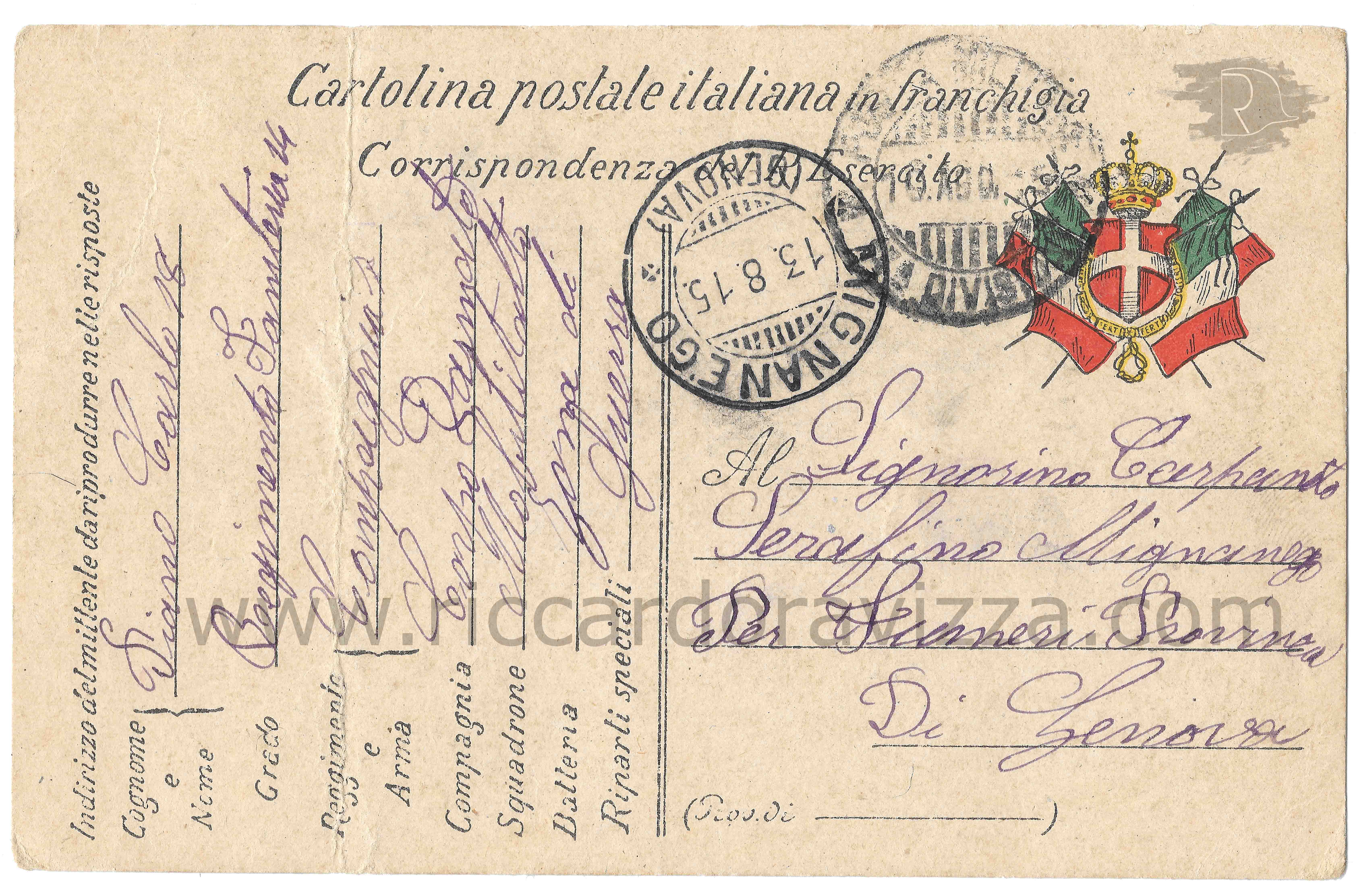 Soldato 18° reggimento fanteria, nato il 19 agosto 1895 a Mignanego, distretto militare di Genova, morto il 3 luglio 1916 sul Carso per ferite riportate in combattimento.