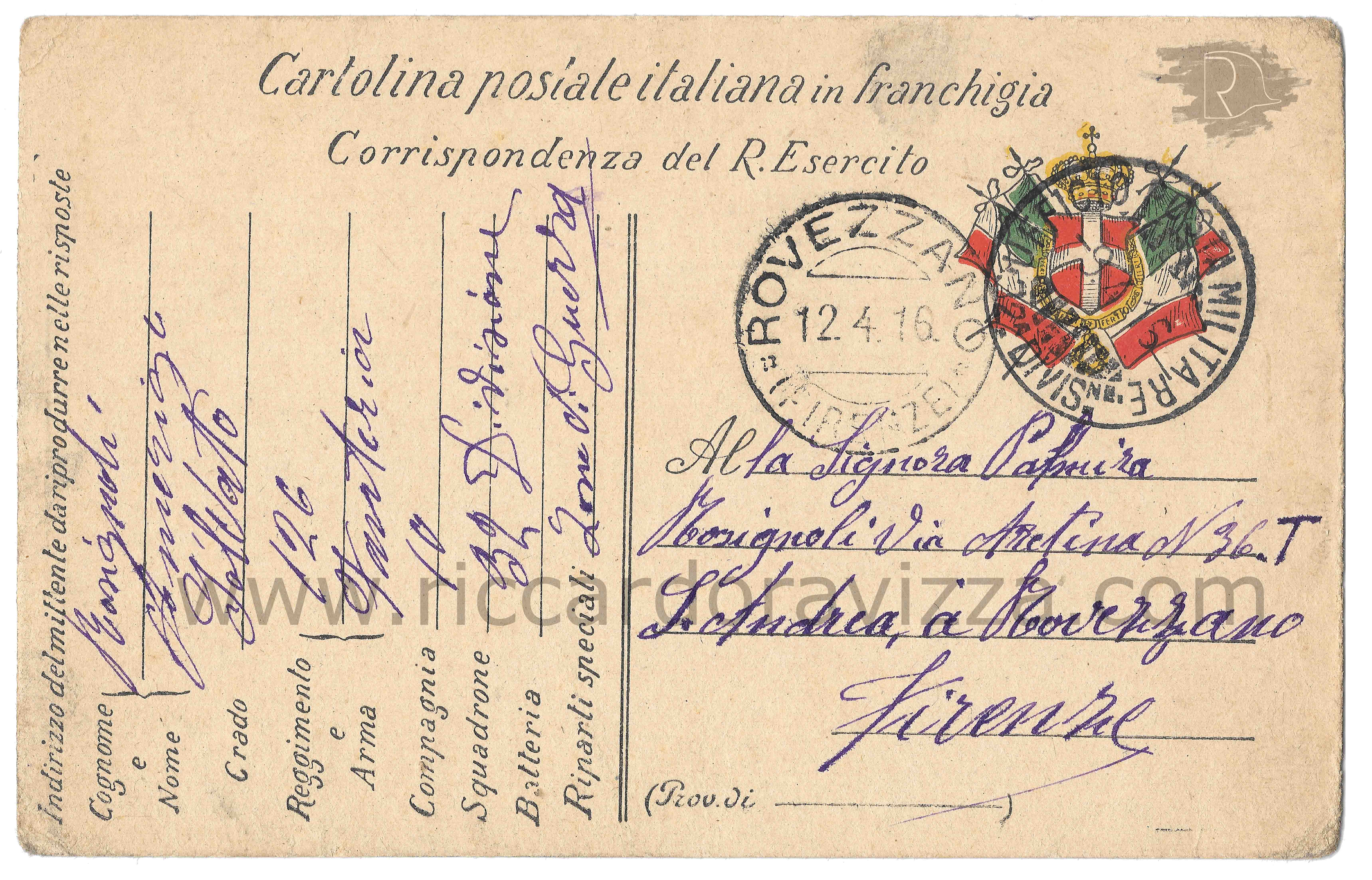 Rosignoli Americo, 126 Regg. Fanteria. Asiago, 14.7.16.
