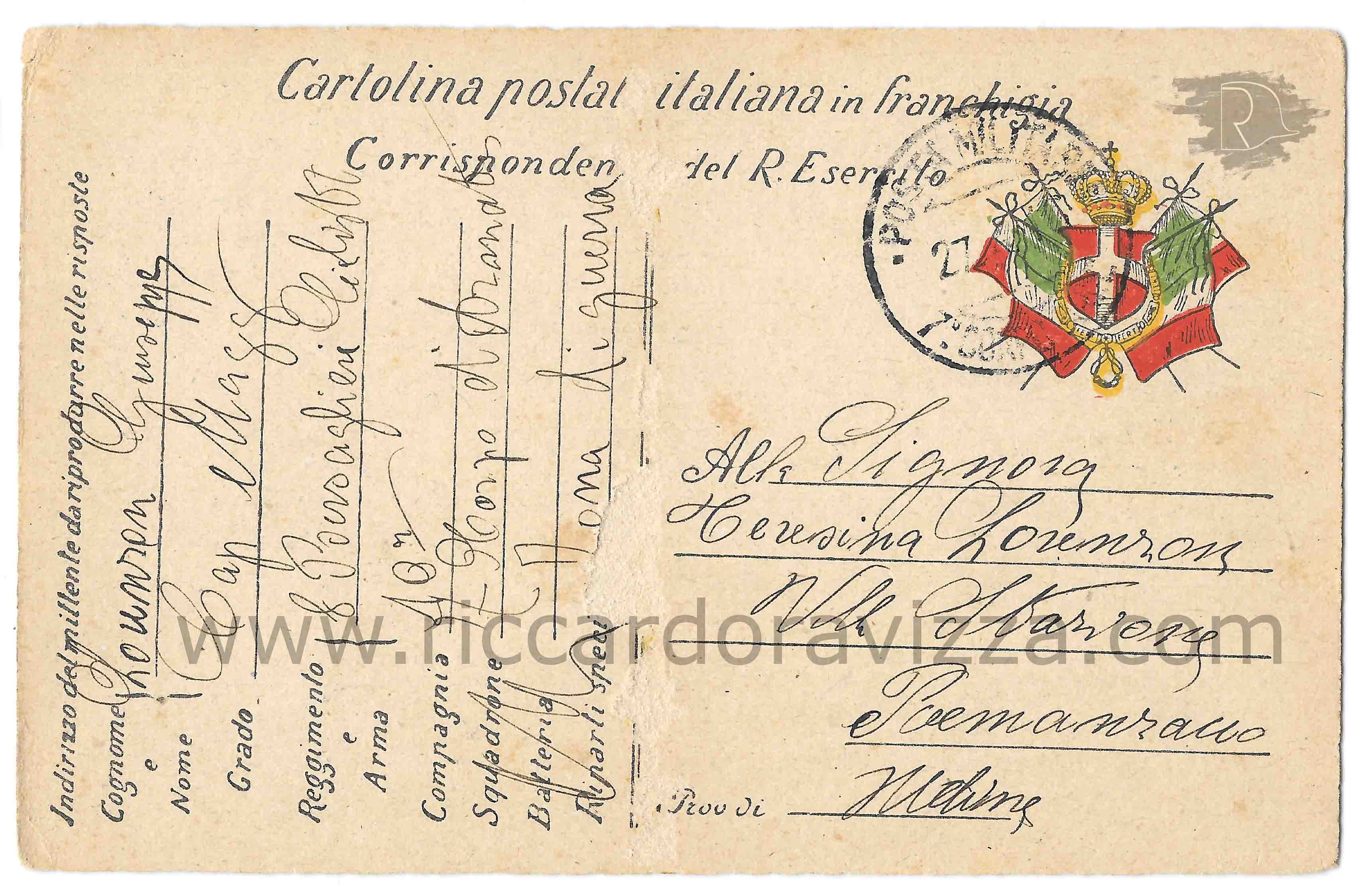 Caporal maggiore 8° reggimento bersaglieri, nota il 26 novembre 1894 a Venezia, distretto militare di Venezia, morto il 14 agosto 1916 sul medio Isonzo per ferite riportate in combattimento.