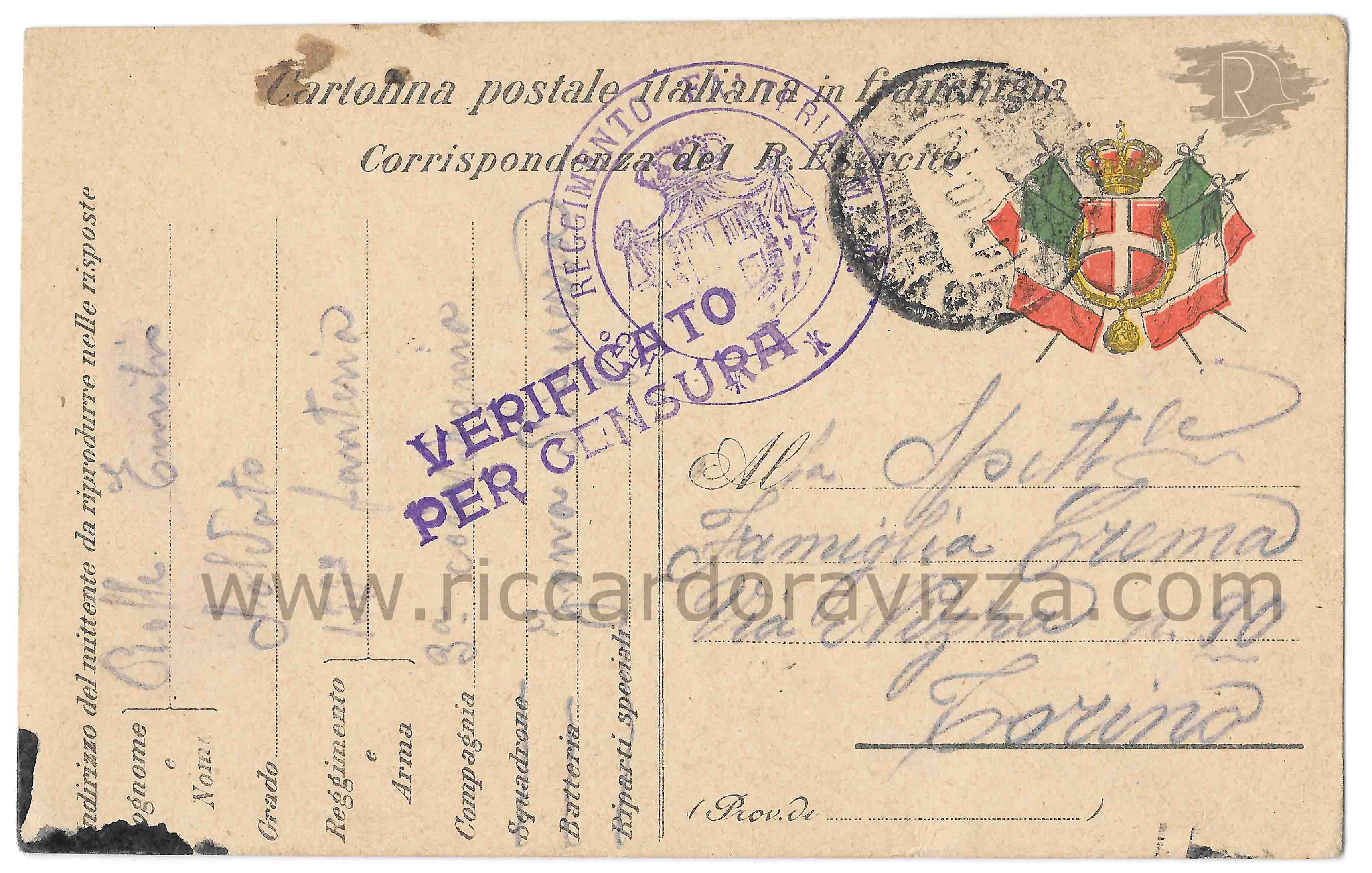 Rolle Emilio, 155 Regg. Fanteria. 62 Sez. Sanità, 28.7.1917.