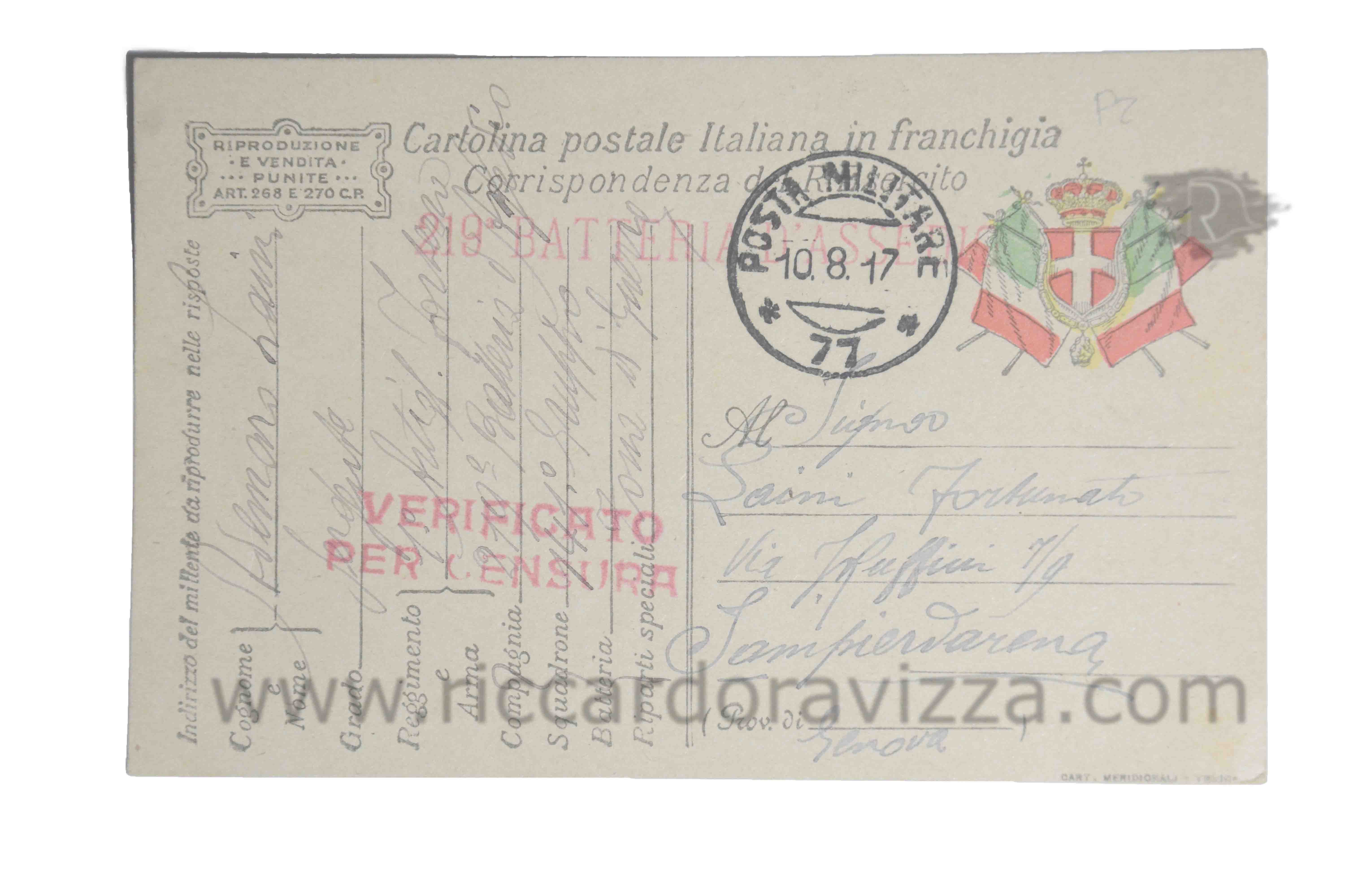 Sergente maggiore 4a compagnia automibilisti, nato il 16 gennaio 1888 a San Pier d'Arena, distretto militare di Genova, morto il 15 novembre 1918 nell'ospedale da campo n.064 per malattia.
