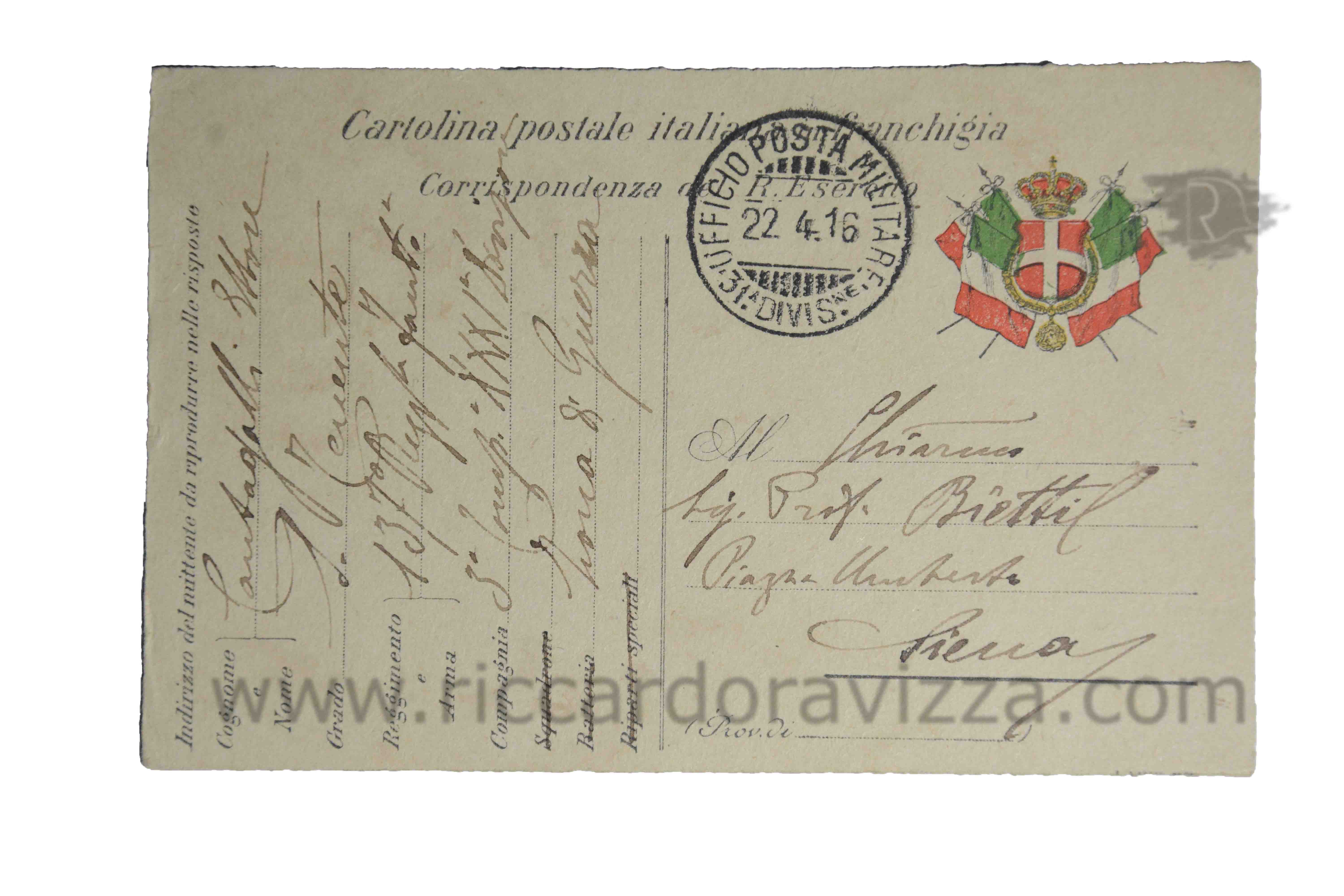 Sottotenente M.T. 137° reggimento fanteria, nato il 18 luglio 1870 a Siena, distretto militare di Siena, morto il 18 giugno 1916 sul monte Cimone per ferite riportate in combattimento.