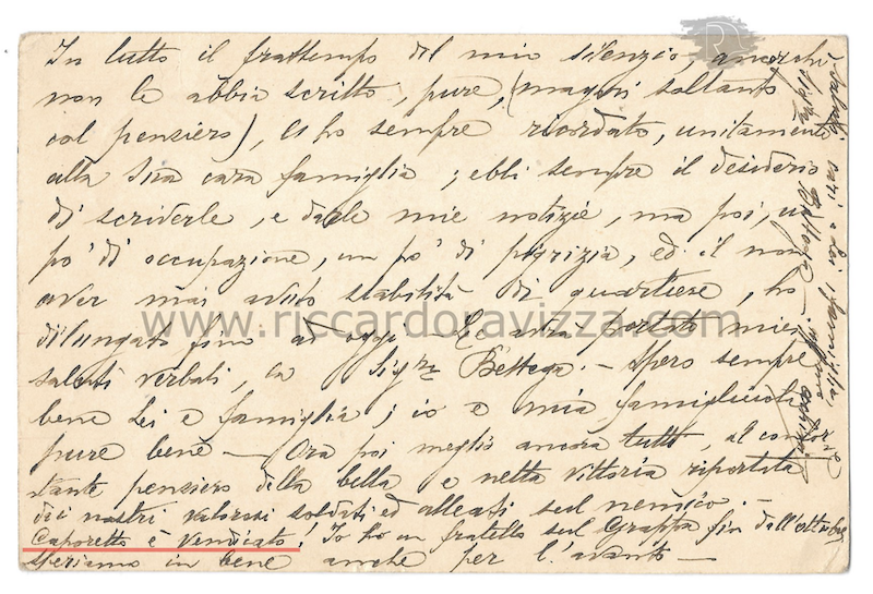 ....il confortante pensiero della bella e netta vittoria riportata dai nostri valorosi soldati ed alleati sul nemico.