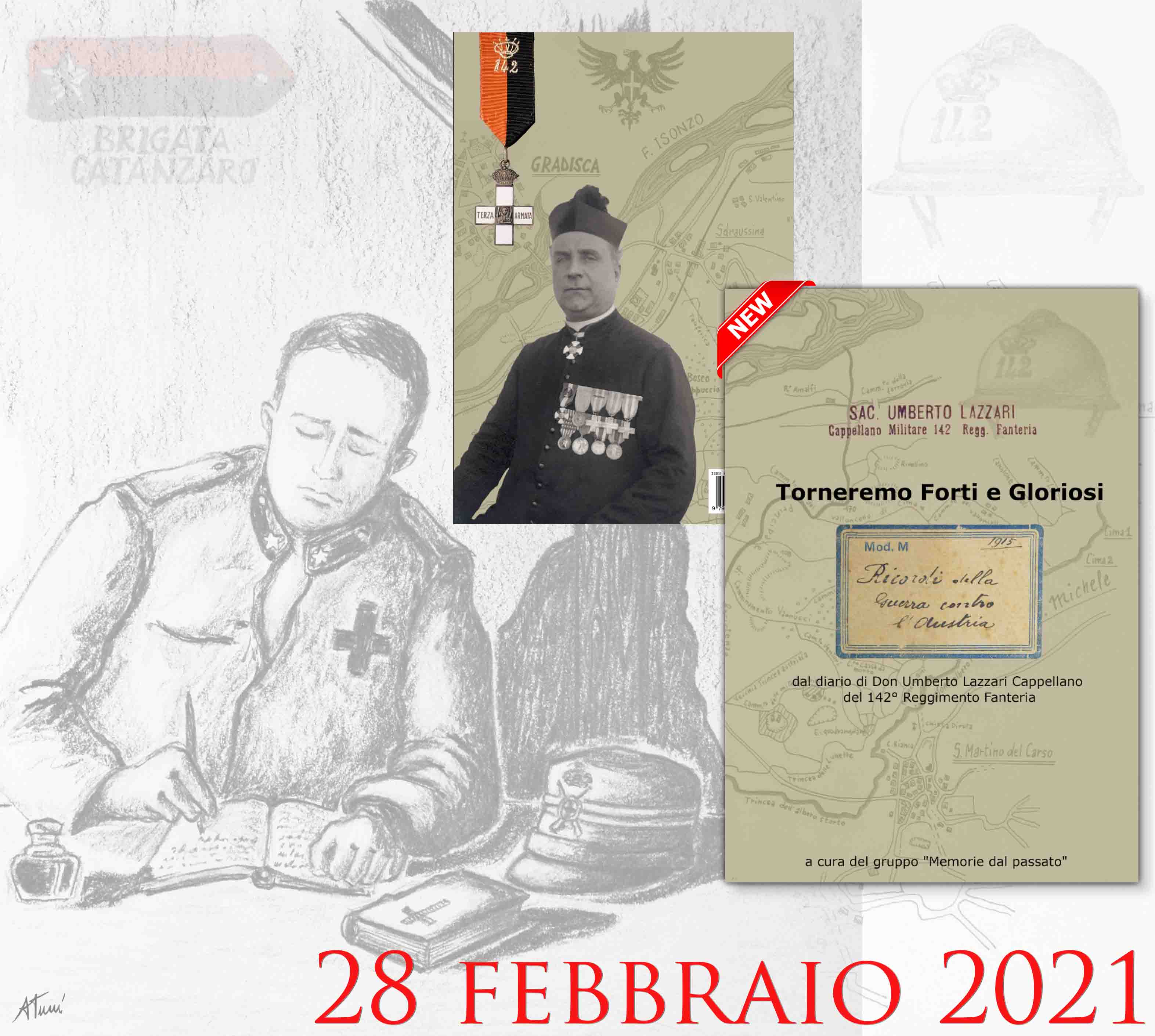 “Torneremo Forti e Gloriosi”, opera di trascrizione del diario ritrovato di Don Umberto Lazzari, Cappellano del 142° Reggimento Fanteria della Brigata Catanzaro durante la Prima Guerra mondiale, è un lavoro nato in un momento in cui tutto era sembrato fermarsi, uno spiraglio di luce durante un periodo di lockdown che aveva ridotto anche le prospettive degli interessi personali.