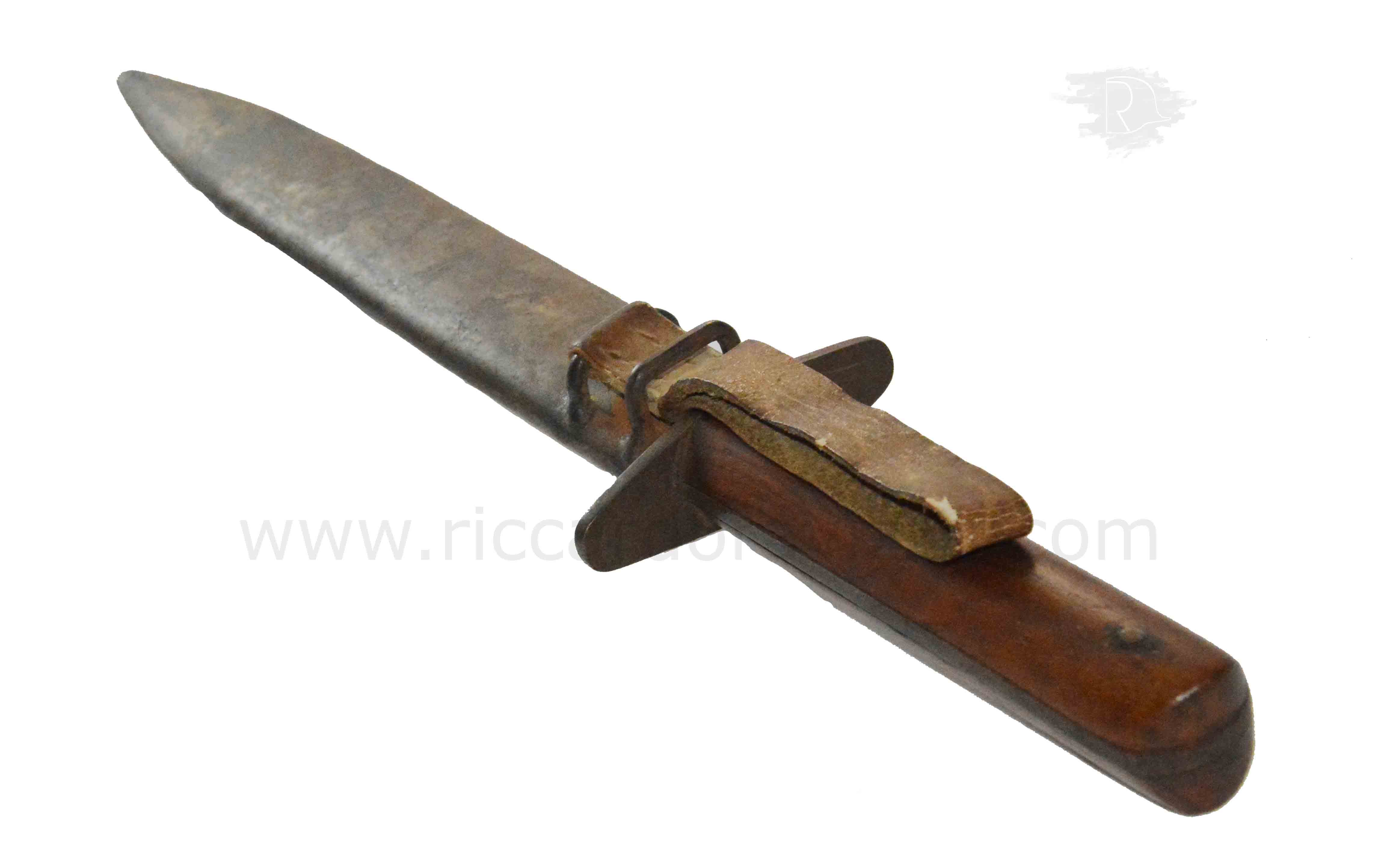 Stupefatti, io e l'amico Carlo, iniziamo a decifrare le parole manoscritte sul foglietto. Molte parti risultano mancanti dato che il foglio è in parte a brandelli. I danni sono quasi sicuramente dovuti alla molla a lamina interna del fodero: dispositivo che serviva a tenere salda la lama al fodero.