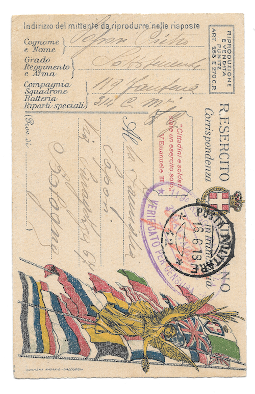 Visto le mie recenti ricerche sul 119° reggimento, una testimonianza dal gran valore documentale. Una serie di cartoline in franchigia attribuibile al sottotenente Pietro Sapori, classe 1897, uscito con il grado di ufficiale dalla Scuola di Modena, e fra i ranghi dell'esercito italiano nella celebre Battaglia del Solstizio del giugno 1918.