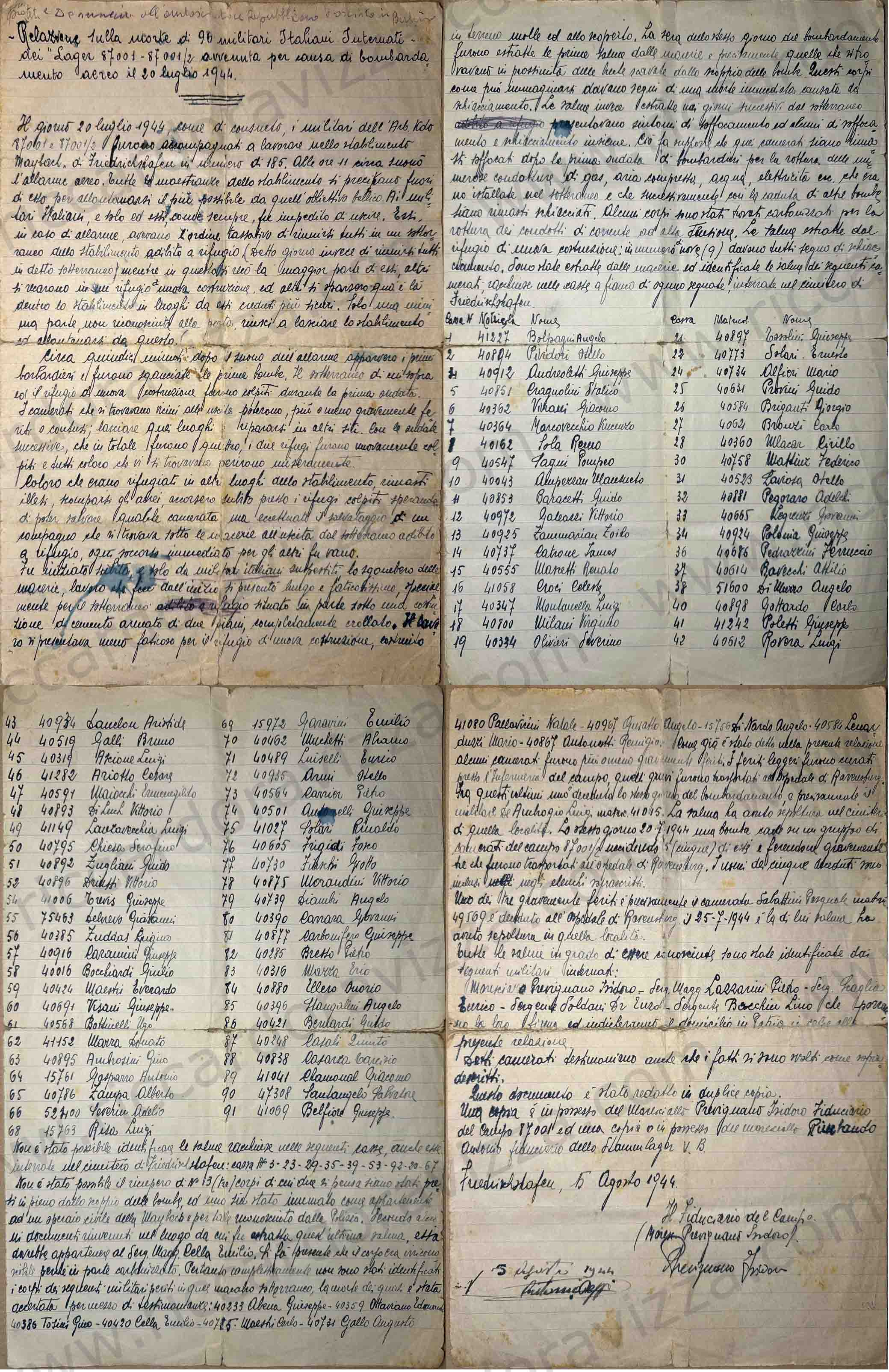 Relazione sulla morte di 96 militari Italiani internati del “Lager 87001 e 87001/2” avvenuta per causa di bombardamento aereo il 20 luglio 1944.